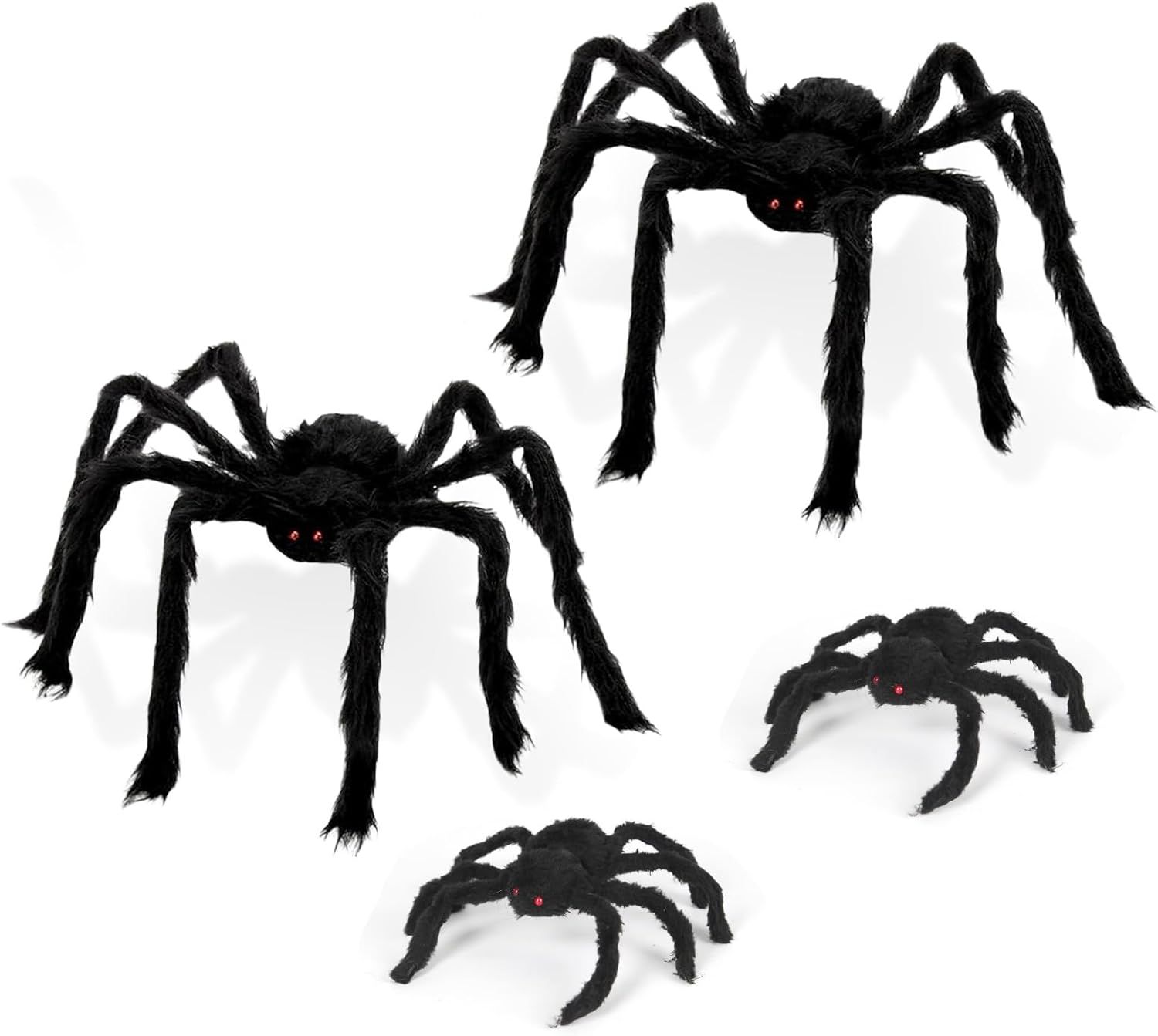 [�� Perfect Halloween Spider]Super realistic furry spider for a creepy display! This spider Halloween decoration is the ultimate spooky Halloween decoration for your house, yard, porch or gate - perfect for creating a Halloween spider invasion effect! Guaranteed to be a hit![�� Durable & Weather-Resistant]Crafted from high-quality, lightweight materials, these outdoor Halloween spiders withstand wind and rain without fading or falling apart. Perfect for halloween outside decorations like your lawn, porch, roof, or spider web. Built for years of Halloween festival decor[�� Incredibly Realistic & Spooky Design]Featuring durable metal frames, soft plush bodies, hairy fur, and menacing red eyes, these fake spiders look terrifyingly real. The ultimate scary decor to create a creepy atmosphere for your Halloween party or carnival decorations[�� Flexible, Poseable Legs & Easy Storage]Bend the flexible spider legs into any creepy pose! When the haunting's over, legs fold tightly together, making these giant Halloween decorations surprisingly space-saving for storage. Great for pranks too[�� Versatile Creepy Decor Anywhere]Place these scary Halloween decorations outdoor or indoor! Perfect for yards, porches, doors, windows, roofs, spider webs, hanging, or amidst halloween cobwebs. Instantly transform your space into a haunted house and surprise everyone on Halloween Day