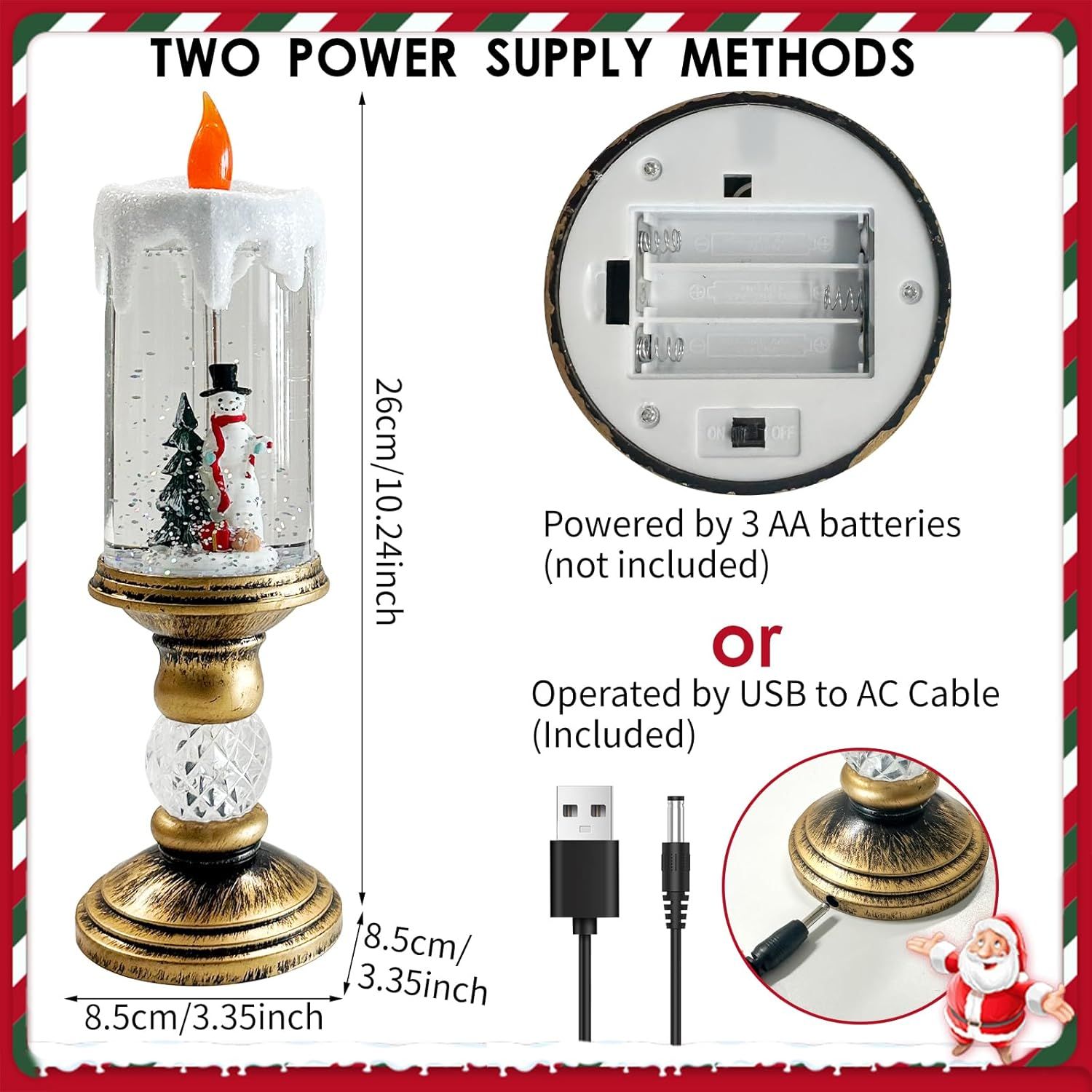 High-Quality Material - This realistic christmas snow globe candle is made from premium PVC, featuring carefully polished, smooth edges that are waterproof. The sturdy base ensures stability, while the intricate sculpture inside is handcrafted from high-quality resin, showcasing exquisite craftsmanship.Play Music - The christmas lantern can play 8 songs: "Jingle Bells," "We Wish You a Merry Christmas," "Silent Night," "Deck the Halls," "Joy to the World," "O Holy Night," "Angels We Have Heard on High," and "Oh Christmas Tree." These festive tunes add a rich holiday atmosphere for Christmas and New Year celebrations.Three Control Modes - The switch offers three settings: "Light Up with Music,-Off-and "Only Light Up, Sliding to the left activates the light mode, where the lights illuminate and the ribbons gently swirl, creating a calming ambiance ideal for use as a nightlight. Sliding to the right activates the music mode, where the ribbons spin in time with the music, creating a joyful atmosphere!Christmas Decoration: This flameless Christmas candle makes an ideal gift for family and friends. It enhances the holiday spirit in any home, creating a warm atmosphere for your loved ones.