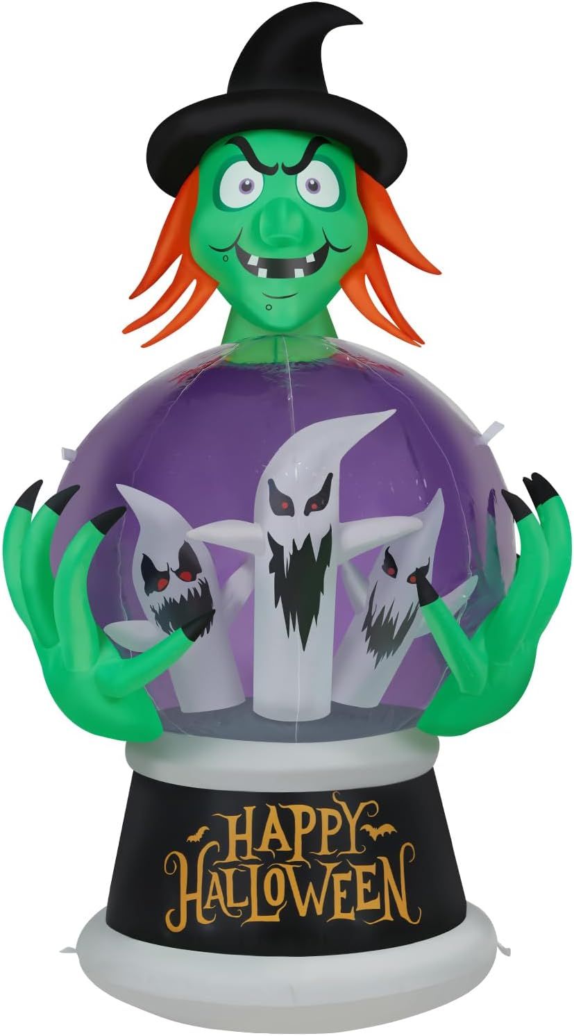 [SPOOKY Appearance Design]Our inflatable witches decoration is 3.2 ft long, 2.9ft wide, and 5.9 ft high. The cute Halloween decoration will also appeal to kids. This childlike décor is perfect for your friends as a gift. This gift will bring you joy and is ideal for your Halloween display.[Easy to Set up]All you need to do is close the zipper at the bottom and plug it in, the auto-inflatable will inflate in just a few seconds for convenience. The scary outdoor inflatable has bright built-in LED lights that look great at night and illuminate neighbors and guests nicely to attract them.[Durable and Stay up Easily] Our blow up light garden decoration is made of high quality fabric, lightweight and durable, easy to store after deflated and can be reused many times. The Halloween inflatable lawn decoration is equipped with ground stakes and ties to keep the tree in a stable condition. Our LED lighted home decor looks so pretty when it is inflated, and it will stay up. Keeping in high spirits, be perfect for indoor and outdoor use.[Widely Used]Our LED light-up decoration is perfect for Halloween patio decorations. The holiday inflatable can also be used as stage props , make your home patio extra scary, attract customers to your store.[Customer Service] We Offer You Best Customer Service, If You Have Any Questions, Please Feel Free to reach out. Our service team would provide 24-hour premium service to help solve any of the problems. Hope you have a great shopping experience.
