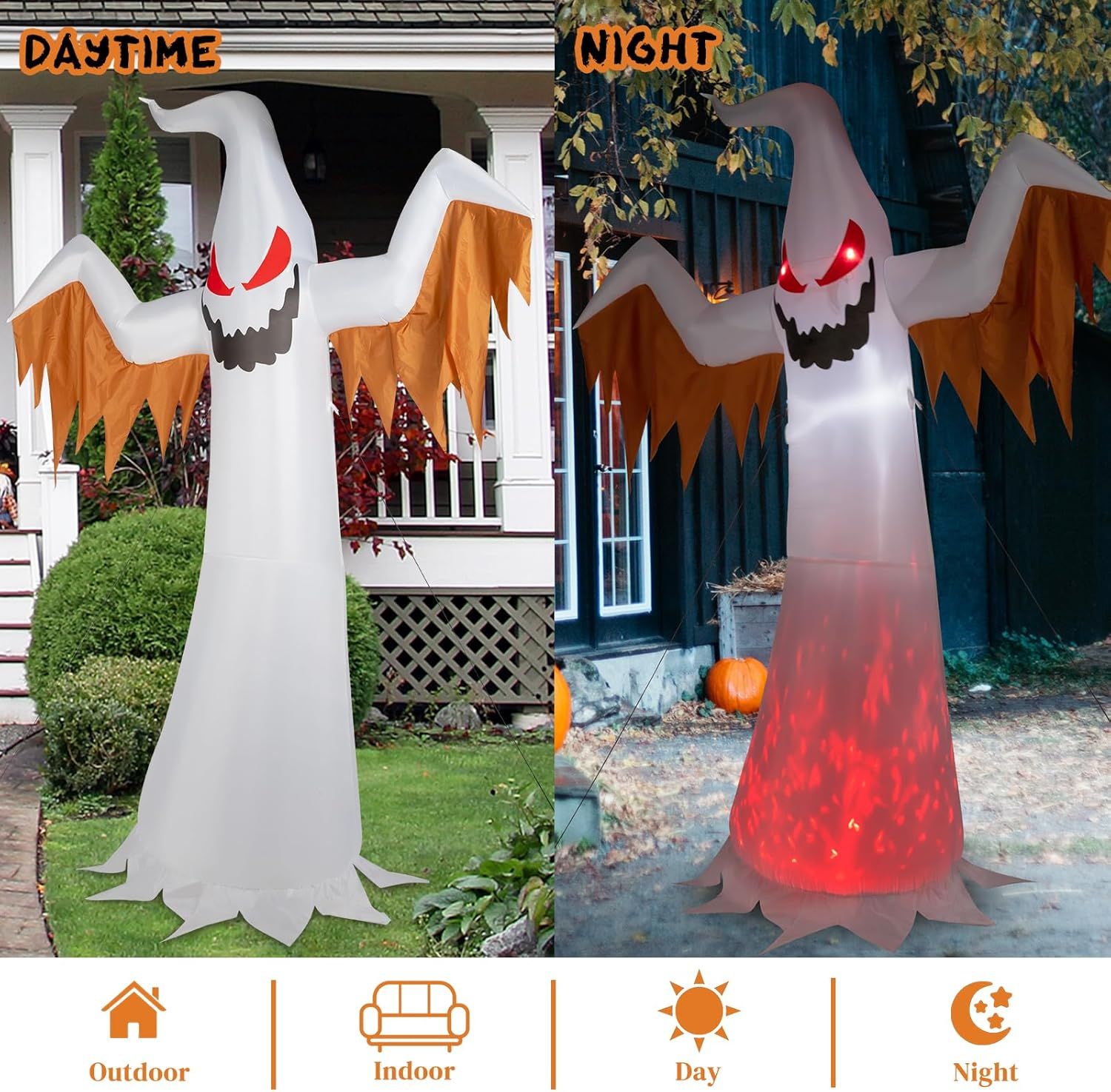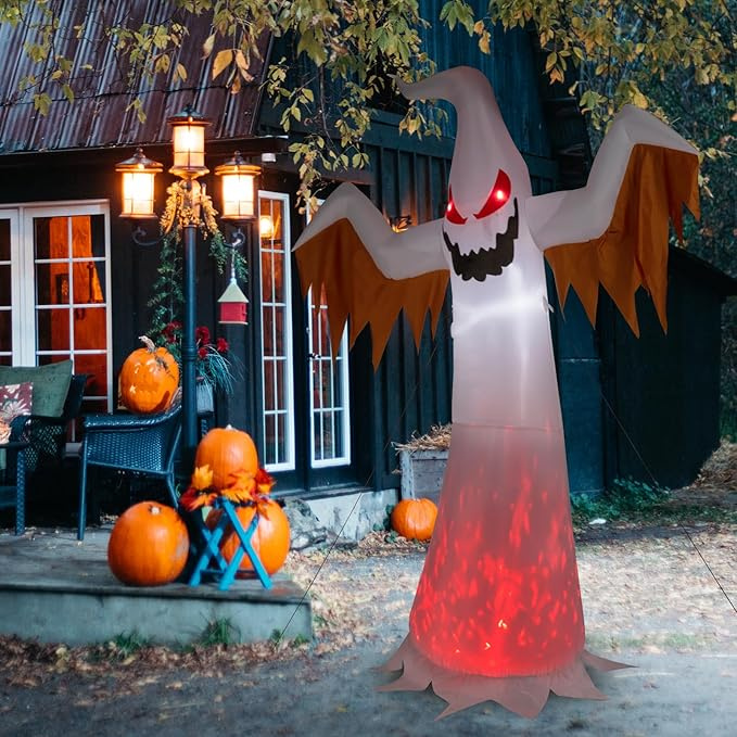[SPOOKY Appearance Design]Our inflatable witches decoration is 3.2 ft long, 2.9ft wide, and 5.9 ft high. The cute Halloween decoration will also appeal to kids. This childlike décor is perfect for your friends as a gift. This gift will bring you joy and is ideal for your Halloween display.[Easy to Set up]All you need to do is close the zipper at the bottom and plug it in, the auto-inflatable will inflate in just a few seconds for convenience. The scary outdoor inflatable has bright built-in LED lights that look great at night and illuminate neighbors and guests nicely to attract them.[Durable and Stay up Easily] Our blow up light garden decoration is made of high quality fabric, lightweight and durable, easy to store after deflated and can be reused many times. The Halloween inflatable lawn decoration is equipped with ground stakes and ties to keep the tree in a stable condition. Our LED lighted home decor looks so pretty when it is inflated, and it will stay up. Keeping in high spirits, be perfect for indoor and outdoor use.[Widely Used]Our LED light-up decoration is perfect for Halloween patio decorations. The holiday inflatable can also be used as stage props , make your home patio extra scary, attract customers to your store.[Customer Service] We Offer You Best Customer Service, If You Have Any Questions, Please Feel Free to reach out. Our service team would provide 24-hour premium service to help solve any of the problems. Hope you have a great shopping experience.