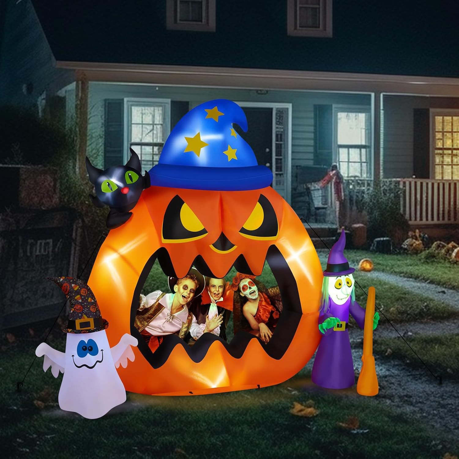 [SPOOKY Appearance Design]Our inflatable witches decoration is 3.2 ft long, 2.9ft wide, and 5.9 ft high. The cute Halloween decoration will also appeal to kids. This childlike décor is perfect for your friends as a gift. This gift will bring you joy and is ideal for your Halloween display.[Easy to Set up]All you need to do is close the zipper at the bottom and plug it in, the auto-inflatable will inflate in just a few seconds for convenience. The scary outdoor inflatable has bright built-in LED lights that look great at night and illuminate neighbors and guests nicely to attract them.[Durable and Stay up Easily] Our blow up light garden decoration is made of high quality fabric, lightweight and durable, easy to store after deflated and can be reused many times. The Halloween inflatable lawn decoration is equipped with ground stakes and ties to keep the tree in a stable condition. Our LED lighted home decor looks so pretty when it is inflated, and it will stay up. Keeping in high spirits, be perfect for indoor and outdoor use.[Widely Used]Our LED light-up decoration is perfect for Halloween patio decorations. The holiday inflatable can also be used as stage props , make your home patio extra scary, attract customers to your store.[Customer Service] We Offer You Best Customer Service, If You Have Any Questions, Please Feel Free to reach out. Our service team would provide 24-hour premium service to help solve any of the problems. Hope you have a great shopping experience.