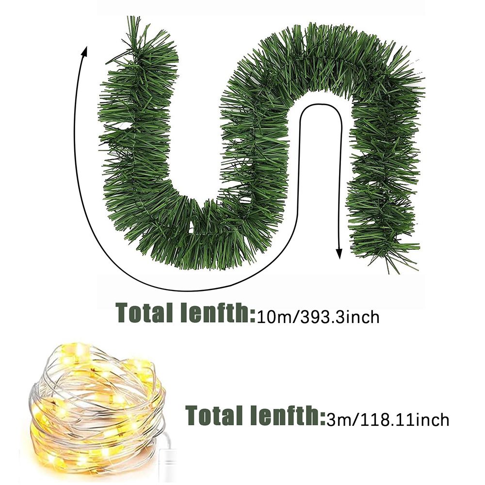 393.3 Inch Christmas Garland with 3 Warm Light Strings Artificial Pine Needles Garland Faux Pine Greenery Stems Twist Wired Tree Branches Wreath Tie f