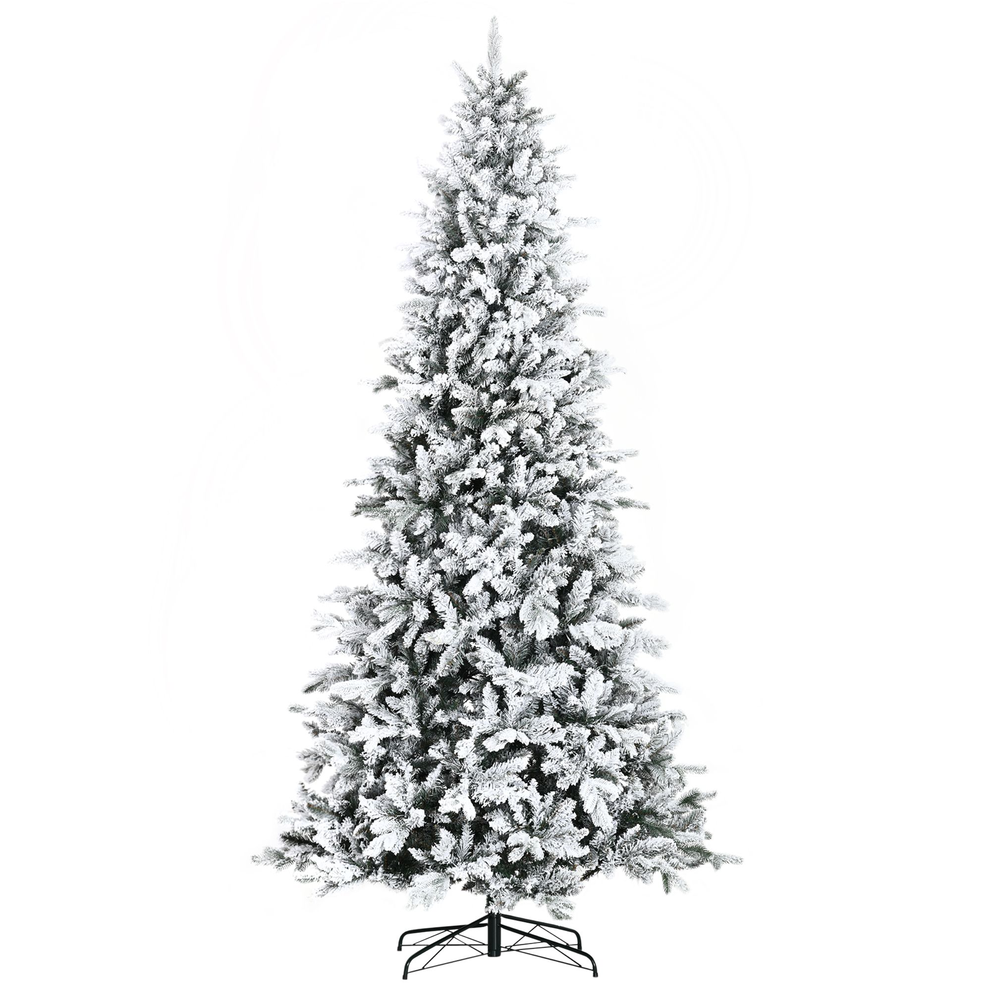 9 ft Pine Snow Flocked Artificial Christmas Tree with 616 Realistic Cedar Branches, Auto Open, Home Holiday Decoration, Green