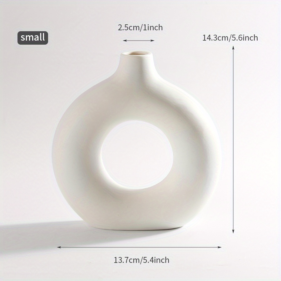 Home > 1pc; White Ceramic Vase White Vases For Decor; Modern Home Decor Vase; Boho Vases For Decor; Circle Vase; Round Vase; Donut Vase; Decorative Vase